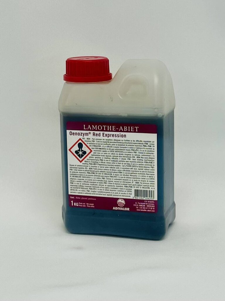 • Enological benefits: Used during alcoholic fermentation, Œnozym® Red Expression allows the extraction of polysaccharides and aromatic precursors, thus increasing fresh and fruity character as well as volume and sweetness to red wines. The freshness of red wines is significantly enhanced.